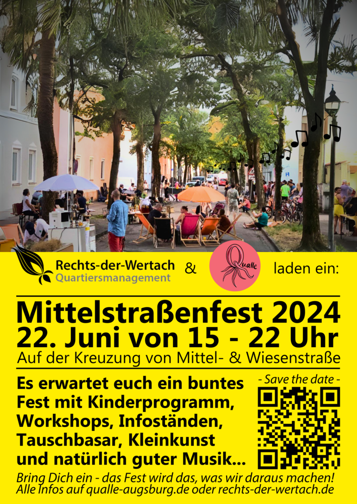 Am Samstag, den 22.06. ab 15 Uhr findet in Rechts-der-Wertach das Mittelstraßenfest 2024 statt.