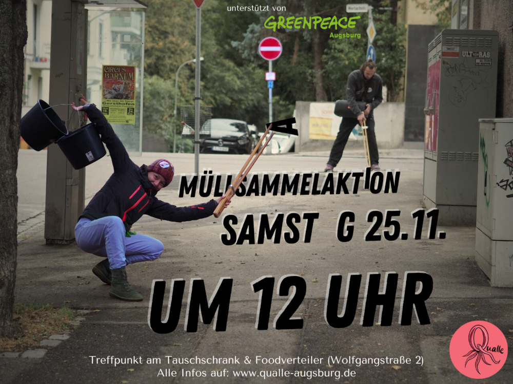 Am kommenden Samstag - 25. November - starten wir wieder eine Müllsammelaktion. Wir treffen uns um 12 Uhr am Tauschschrank & Foodverteiler an der Ecke Wertachstraße/Wolfgangstraße (Wolfgangstraße 2).
