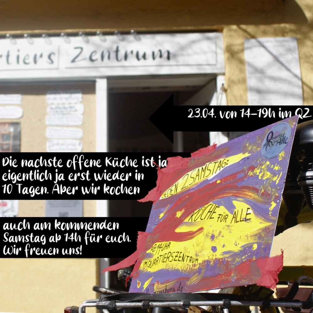 Am kommenden Samstag, 23. März, 14-19h, Quartierszentrum Rechts-der-Wertach: Küche für Alle (& gemütliches Banner malen)