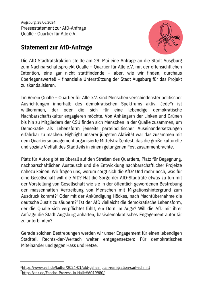 Der Verein „Qualle" reagiert auf eine AfD-Anfrage