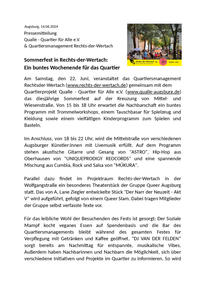 Sommerfest in Rechts-der-Wertach: Ein buntes Wochenende für das Quartier